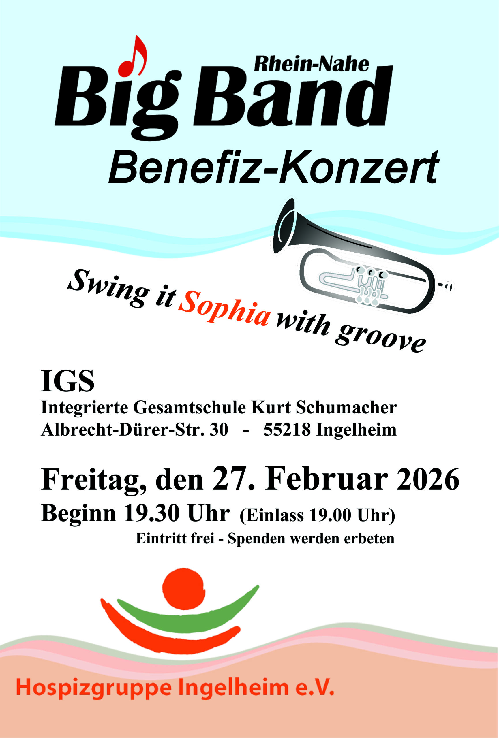 „Swing it Sophia with groove“ ​– Benefizkonzert der Rhein-Nahe Big Band zu Gunsten der Hospizgruppe Ingelheim